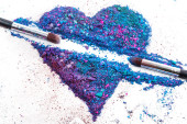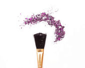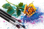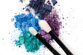 Zgnieciony szczotki cieni do powiek i makijaż na białym tle