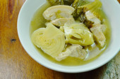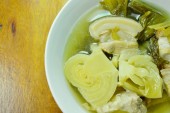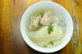 gotowane kawałek bambusa strzelać z wieprzowiny zupa z kości na misce