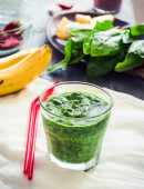 Mango, Banana, lniane posiłku z wody kokosowej, jagody goji i Matcha Smoothie