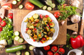 Wirydarz-do góry fotografia miskę soczewicy sałatki