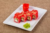 Zdjęcie "Japoński roll imitujące mięsa kraba" może być wykorzystywane do celów osobistych i komercyjnych zgodnie z warunkami zakupionej licencji Royalty-free. Obraz jest dostępny do pobrania w jakości wysokiej rozdzielczości do 5760x3840.