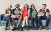 Grupa przyjaciół różnorodnych razem oglądania filmu 3d