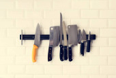 Zdjęcie "Zestaw noży wiszących na białej ścianie" może być wykorzystywane do celów osobistych i komercyjnych zgodnie z warunkami zakupionej licencji Royalty-free. Obraz jest dostępny do pobrania w jakości wysokiej rozdzielczości do 5760x3840.