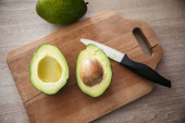 Widok z lotu ptaka świeże awokado na pokładzie cięcia drewnianych