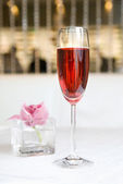 Ładny kieliszek różowego szampana i butelkę z tyłu