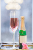 Panna Młoda piękne ręce, trzymając szklankę Szampan różowy