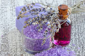 Spa kompozycja z kwiatów lawendy, śmietany, sól i mydło na białym tle