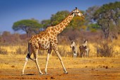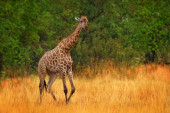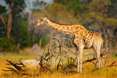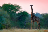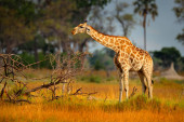 Zdjęcie "Żyrafa w lesie bush, wieczorem światło, zachód słońca. Żyrafa sielankowy sylwetka z wieczornym błękitne niebo, Botswana, Afryka. Scena dzikość z natury." może być wykorzystywane do celów osobistych i komercyjnych zgodnie z warunkami zakupionej licencji Royalty-free. Obraz jest dostępny do pobrania w jakości wysokiej rozdzielczości do 5760x3840.