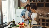 Zdjęcie "Afro-para szukając przepis za pomocą cyfrowego tabletu" może być wykorzystywane do celów osobistych i komercyjnych zgodnie z warunkami zakupionej licencji Royalty-free. Obraz jest dostępny do pobrania w jakości wysokiej rozdzielczości do 5760x3840.