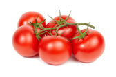 zbliżenie pomidorów na winorośli na białym tle