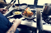 Zdjęcie "Szef kuchni gotowania żywności w kuchni restauracji" może być wykorzystywane do celów osobistych i komercyjnych zgodnie z warunkami zakupionej licencji Royalty-free. Obraz jest dostępny do pobrania w jakości wysokiej rozdzielczości do 5760x3840.