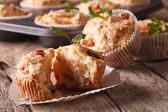 Dietetyczne babeczki z płatki owsiane z rodzynkami i miodem zbliżenie na stole. pozio