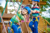 Młody chłopak zabawy gry i o aktywnościach na świeżym powietrzu. Szczęście i koncepcja szczęśliwe dzieciństwo. Chłopiec huśtawka na lina.