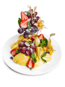 dojrzałe owoce tropikalne i plastry i szkła z sokiem