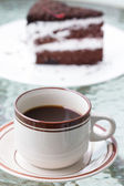 filiżankę kawy i czekoladowe ciasto