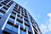 Urban streszczenie tło, wszystko z nowoczesną szklaną fasadą, biuro biznes budynek