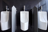 Pisuary w nowoczesne publicznej toalecie męskiej wnętrze z biały ceramicznych pisuarów na podłodze czarno-białe.