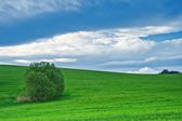 Stado bocianów i Czaple szare w pobliżu lonely drzewo. W tle widać burzliwy dekoracje