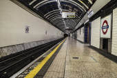 Londyn, Anglia Uk - 31 grudnia 2017 r.: Schodów ruchomych z innymi ludźmi w stacji metra w Londynie, Anglia, Wielka Brytania