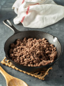 Zdjęcie "Widokiem z góry rumiane gorund wołowiny i cebuli na patelni" może być wykorzystywane do celów osobistych i komercyjnych zgodnie z warunkami zakupionej licencji Royalty-free. Obraz jest dostępny do pobrania w jakości wysokiej rozdzielczości do 5760x3840.
