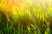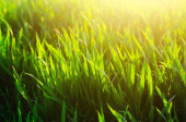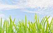 Świeża trawa na i błękitne niebo. krajobraz. piękny widok. Natura, środowisko. tło dla projektu. Selektywny fokus