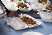 Pusan, Korea Pd. - 24 marca 2018: Busan Street food, Mandu na międzynarodowym festiwalu filmowym w Busan (Biff) placu Nampo-Dong, Jung-gu