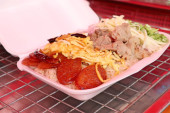 Pusan, Korea Pd. - 24 marca 2018: Busan Street food, Mandu na międzynarodowym festiwalu filmowym w Busan (Biff) placu Nampo-Dong, Jung-gu
