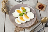gotowane jajko na śniadanie z soku pomarańczowego i mango
