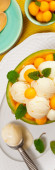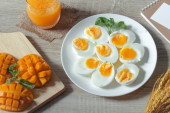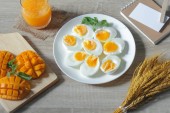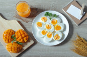 gotowane jajko na śniadanie z soku pomarańczowego i mango