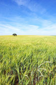 pole pszenicy młodych jako tło, jasne słońce, piękne lato krajobraz