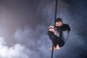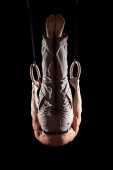 cyrku artysta na lotnicze paski z silne mięśnie na czarnym tle
