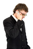 Portret mężczyzny biznes chłodzenie z butelką wody na białym tle na białym tle, tło powierzchni reklamowych