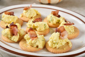 zielone oliwki z serem feta i hummus na obwarzanek grzanki