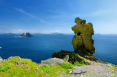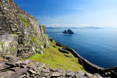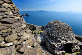 kamienne ruiny Skellig Michael lub wielki Skellig, Irlandia.