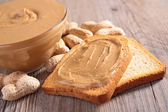 Masło orzechowe obrazów. Miskę masła orzechowego na brązowym tle. Grzanka z masłem orzechowym. Śniadanie martwa. Amerykański przysmak