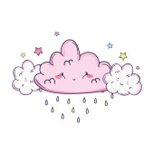 Różowy i niebieski chmur, ręcznie rysowane akwarela design.