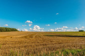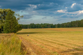 Zdjęcie "Pola uprawne i łąki na Mazowszu, bezchmurne jasne niebo. Poniżej można zobaczyć niektóre pola zniszczone przez deszcz" może być wykorzystywane do celów osobistych i komercyjnych zgodnie z warunkami zakupionej licencji Royalty-free. Obraz jest dostępny do pobrania w jakości wysokiej rozdzielczości do 5760x3840.