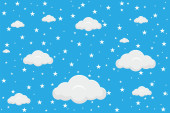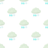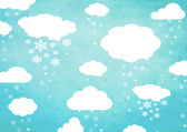 Akwarela ilustracja niebieski chmury i płatki śniegu.