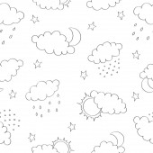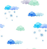 Akwarela ilustracja różowe chmury i płatki śniegu.