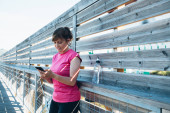 Zdjęcie "Obraz z niesamowite młoda Azjatka sportowe kobiety na zewnątrz przy użyciu telefonu komórkowego." może być wykorzystywane do celów osobistych i komercyjnych zgodnie z warunkami zakupionej licencji Royalty-free. Obraz jest dostępny do pobrania w jakości wysokiej rozdzielczości do 5760x3840.
