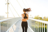 Obraz z wspaniały piękna młoda Azjatka sportowe kobieta patrząc w bok na zewnątrz.