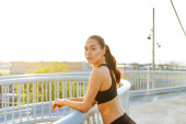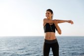Obraz kobiety piękne młode Azjatki Sport zrobić ćwiczenia rozciągające na zewnątrz.