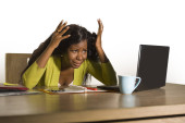 Zdjęcie "młode piękne smutne i zdesperowany czarny afro American kobieta uczucie podkreślił, sfrustrowany praca w domu kuchnia z domowych pracy stres w koncepcji zmęczony i przepracowany gospodyni" może być wykorzystywane do celów osobistych i komercyjnych zgodnie z warunkami zakupionej licencji Royalty-free. Obraz jest dostępny do pobrania w jakości wysokiej rozdzielczości do 5760x3840.