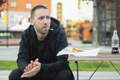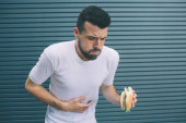 Zdjęcie "Brodaty mężczyzna żucia sandwich na ulicy." może być wykorzystywane do celów osobistych i komercyjnych zgodnie z warunkami zakupionej licencji Royalty-free. Obraz jest dostępny do pobrania w jakości wysokiej rozdzielczości do 5760x3840.