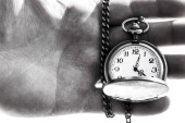 Stary zegar kieszeń na podłoże drewniane, obraz z miejsca na tekst