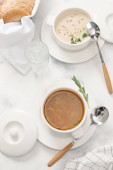 Dwa rodzaje Zupa krem z ziół na białym tle
