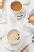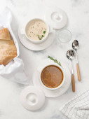 Dwa rodzaje Zupa krem z ziół na białym tle