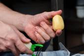 Frytki, gotowanie. Siatki z pasków ziemniaków obniżony do bo