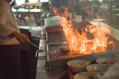 Zdjęcie "Kucharz jest warzywa podsmażyć z przyprawami i sosem w woku na płomień. Proces gotowania w restauracja Azjatycka." może być wykorzystywane do celów osobistych i komercyjnych zgodnie z warunkami zakupionej licencji Royalty-free. Obraz jest dostępny do pobrania w jakości wysokiej rozdzielczości do 5760x3840.