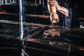 Kucharz jest warzywa podsmażyć z przyprawami i sosem w woku na płomień. Proces gotowania w restauracja Azjatycka.